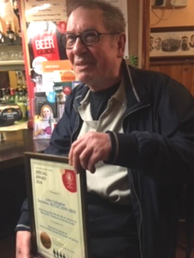 Middlesex CAMRA made a special award to John Gallagher from Horn Lane for his services over