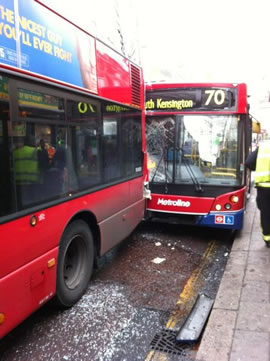 The incident took place this morning (7th February). London Ambulance service is attending. At this stage there is no indication that any of the injured have been very seriously hurt.