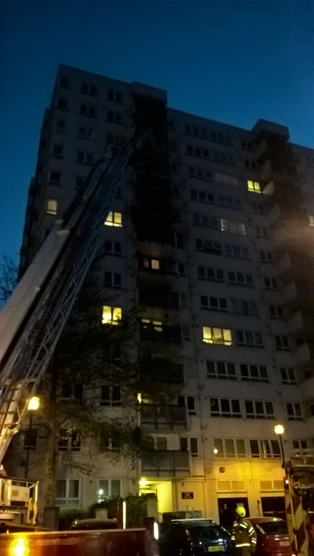 Forty people had to be evacuated from Harlech Tower in South Acton this Thursday evening (18 April) after a fire broke out on a seventh floor balcony.
