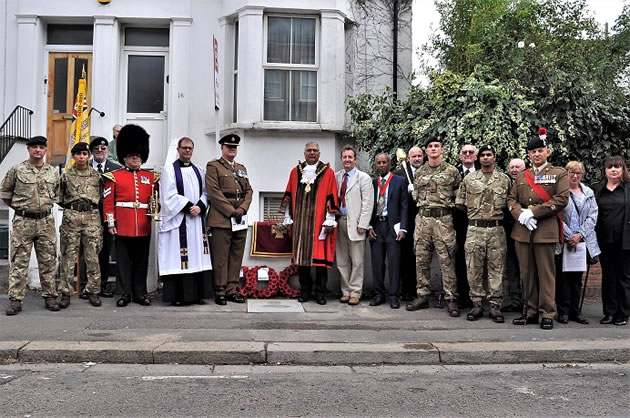 The paving stone was laid by the mayor of Ealing, Councillor Tejinder Dhami. Also in attendance was council leader Julian Bell, Rector of Acton the Reverend Dean Ayres and military representatives.