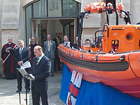 After the service, the Bishop of Southwark led the congregation to the south bank of the River Thames. The RNLI lifeboat from Tower Pier was positioned on the river between Cannon Street Bridge and London Bridge, close to where the Marchioness disaster occurred.