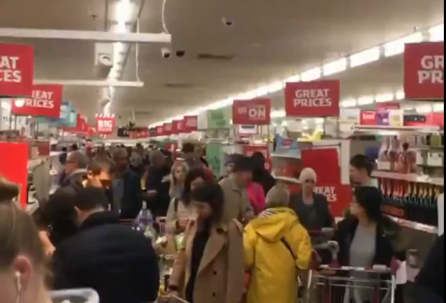 There were long lines of people with heavily laden trollies going over the middle aisle in the store. The rush occurred early on Sunday afternoon (15 March) and was captured on video. People were being prevented from entering the supermarket because it was becoming so overcrowded.