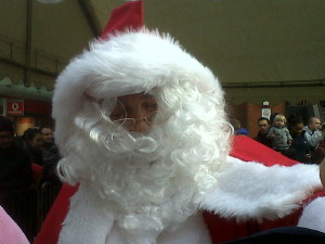 The big man was handing out gifts to the many excited youngsters gathered in the square and was also collecting for charity.
