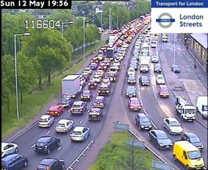 West London was brought to a standstill this evening (Sunday 12th May) following a serious accident on the A4 near Talgarth Road, Hammersmith.