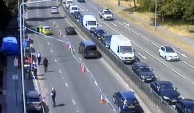 Two lanes of the A4 were closed while forensics officers worked at the scene from a blue tent.