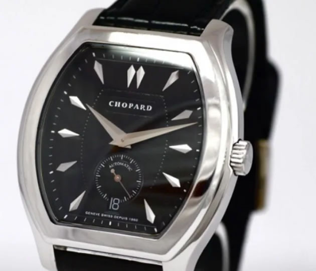 The stolen watch is a Chopard LUC 18ct white gold Limited Edition strap watch, number 298 of 1860. It has a black face and black crocodile strap.
