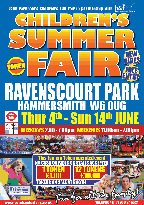 A children's summer funfair is to be held at Ravenscourt Park, Hammersmith, W6 0UG from