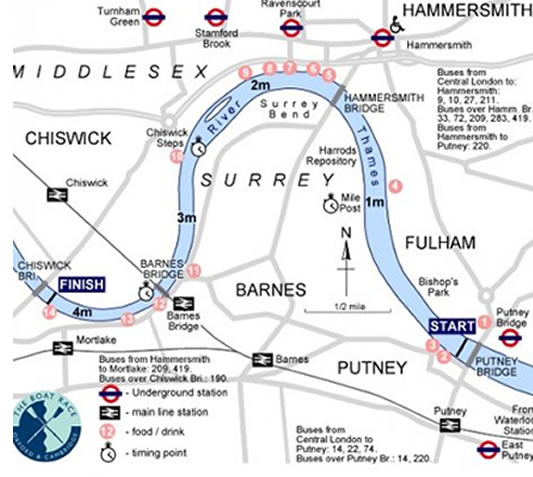 Those wishing to watch the ending at Chiswick Bridge (where TfL have promised to take down the works barriers in advance of the Race) bear in mind that the race ends quite a short time after the start- the record is held by Cambridge (1998), at 16mins 19secs. Book your vantage place in good time.