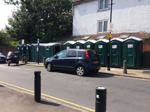 Local Councillor Joanna Biddolph was kept busy with complaints from residents all day, including an irate resident who found twelve portaloos against their wall (see image below).