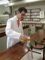 Matthew Cliffe from Ealing (pictured right in the middle of a chemistry experiment) was invited along with twelve other students from around the UK to enter for Round Two of the chemistry Olympiad; this took place over a weekend at Keele University at the end of March.