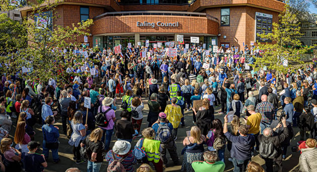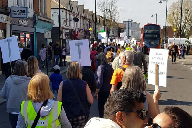 The demonstration held in Ealing this Saturday (24 April) against Low Traffic Neighbourhood schemes was even bigger than the one held earlier in September according to participants on the march.