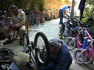 Pre-loved bikes are donated, or given for sale in return for a share of the proceeds. A team of enthusiastic volunteers check and clean all the bikes and make sure they are in working order and that in itself adds hugely to their value. The team of around 30 volunteers come from all walks of life and from all around the local community – from bike enthusiasts who use their knowledge to fix up the bikes to others who clean bikes, pump tyres and make sure everyone is kept happy with refreshments while they are working.