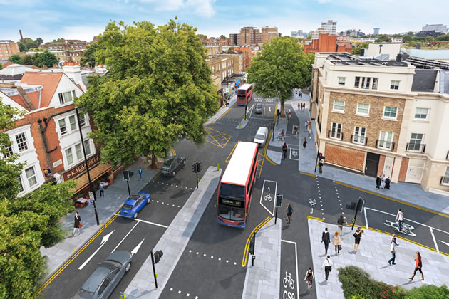 The local section of the 5.6 mile long superhighway between Hammersmith to Brentford would extend from Olympia in West Kensington to the western end of King Street and would involve changes, including the replacement of some traffic lanes with segregated cycle tracks, changes to bus and coach stops, alterations to side roads including new signals at junctions, new pedestrian crossings, narrower footpaths and new trees and seating areas.