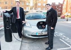 " We are committed to improving air quality and driving-down harmful emissions in H&F by leading the charge in availability of charging bays for low and zero emission vehicles," says Cllr Stephen Cowan, Leader of Hammersmith & Fulham Council, seen here by the point in Standish Road.