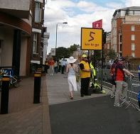 The scene was very different on a sunny Saturday when excitement built at 3.30pm as onlookers gathered to see the men cyclists return on their way to The Mall. At the boundary of Fulham and Chelsea there were just five kilometers to go.