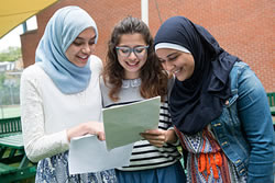 Students at Fulham Cross Girls' School, Munster Road, Fulham get their GCSE results in August 2015