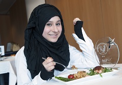 Amina, 14, beat four other local students to the title after impressing judges with her menu of baked salmon, Mediterranean rice, sundried tomatoes and yoghurt dressing followed by chocolate fondant and homemade vanilla ice cream.