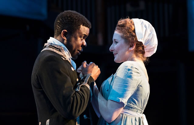But the maypole of merriment around which all the other characters get tied up like brightly coloured ribbons is Richard’s manservant Brass. This creation by actor Keir Charles offers the foppiest, dandiest and dippiest impression of the upper classes. Even his struggle to pronounce vowels properly appears to sinuously engage his whole body, while variously pouting and baring his teeth at Louisa, with whom he is smitten, like a character plucked from a Gillray cartoon.