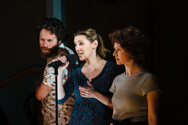 Israeli playwright Maya Arad Yasur, here translated from Hebrew by Eran Edry, has written from the heart of personal experience. And the play is completely open structured. She gives no lines to specific characters but just asks that her words, including the footnotes, are spoken by a minimum of three people. Here we have a cast of four: two men, Daniel Abelson and Fiston Barek, and two women, Michal Horowicz and Hara Yannas. It's a piece of perfectly balanced casting by Sophie Parrott, vital as it's only the change of pace and delivery between the characters that help make sense of the lines being handed one to another. The actors are equally charismatic.