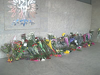 This week tha flag has flown at half mast outside the centre, and hundreds of people have gathered there to lay flowers and candles in memory of the victims, and to sign a book of condolence.