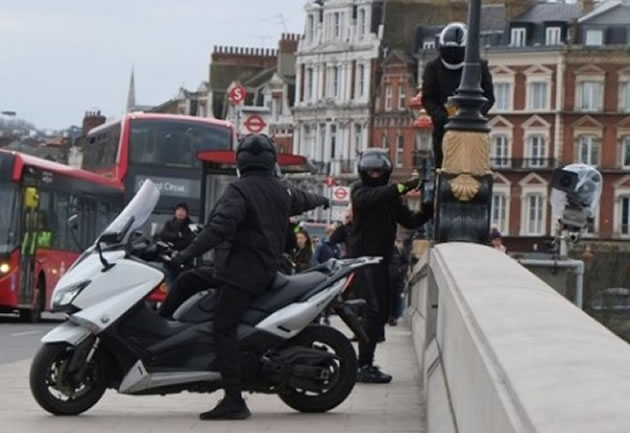 The gang attempting to steal BBC camera on Putney Bridge