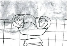 The exhibition of drawings and paintings by Ali - including his ink drawing, 'Still Life with Fruit and a Sponge' (right) - took place in the hall of the school in High Path.
