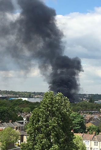 Thick smoke was visible for miles above Wimbledon after a rubbish fire behind Wimbledon Greyhound stadium on Plough Lane on Tuesday (May 2).