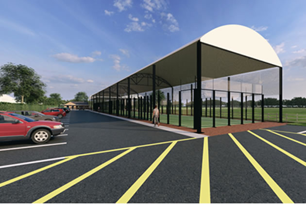 A visualisation of the new padel courts with the pavilion on the left. Picture: Wasps FC