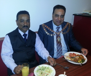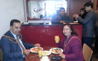 This Sunday saw the Mayor of Hounslow, Councillor Prittam Grewal and the Lady Mayoress (pictured left) visiting Sami's Spice Restaurant for a splendid post-opening lunch, a selection of dishes offered and served by Sahid (below with the Mayor) and his family, owners of Sami's Spice.