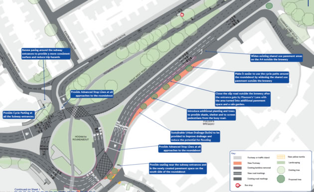 Overview of TfL's plan for Hogarth Roundabout. Click here for larger version