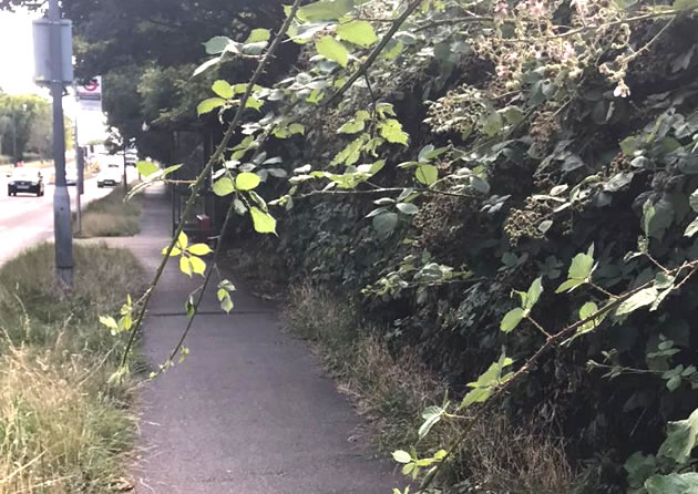 Brambles over path by A316 Chertsey Road