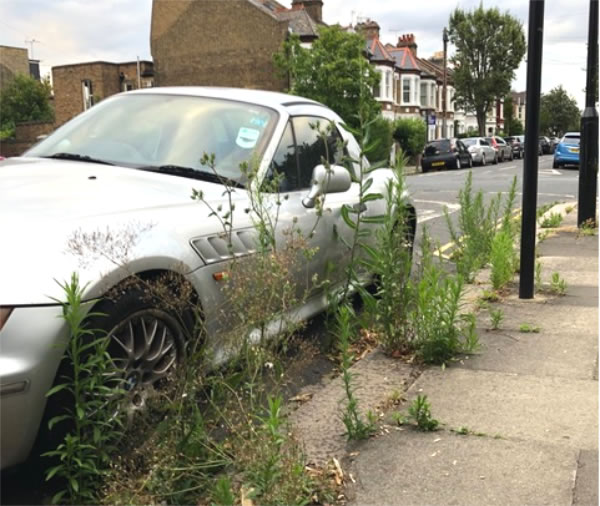 Weeds on Rothschild Road, W4 growing higher than a car..