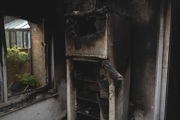 A burnt out fridge. The Hanwell fire was caused by a tumble dryer