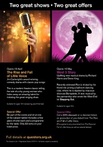 Two top shows are coming to The Questors Theatre and you can get 20% discount on a standard ticket for one of the shows when you book tickets for the other - or on production of your ticket for the other.