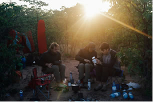 Usually between 6 and 7 in the evening when we have arrived at our at destination. We sit round some sort of fire or gas stove and reflect on the day, write our diaries and discuss various moments.