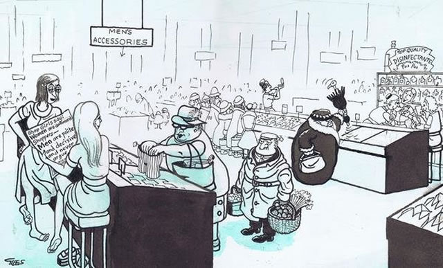 Giles saw his cartoons as social satire. He was the first cartoonist to have a truly national appeal and he became an institution as year on year his annuals topped the bestseller lists at Christmas. Giles influenced future generations of cartoonists and was a true giant among Britain’s cartoonists.