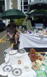 Questor’s member and regular car boot seller, Pam Redrup, brings along her vintage collection of plates for sale but comments that most buyers are looking for smaller objects to buy.
