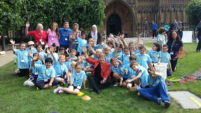 Ealing Angie Bray MP met children from Southfield Primary School who came to play some tennis in New Palace Yard outside the Palace of Westminster, right by Big Ben.