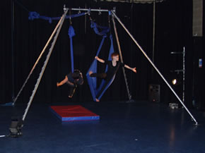 Photographs cannot capture the creativity of the moving image or the digital exploits of the groups. However the outputs of two of the workshops are shown in these images, Aerial Acrobatics and Graffiti Art. The Aerial Acrobats had to develop their mobility before they took to the air. The Graffiti Artists had to work at planning their end-result before they started painting. In every case the 'journey was as important as the destination' and everyone left, happier and more confident than when they arrived.