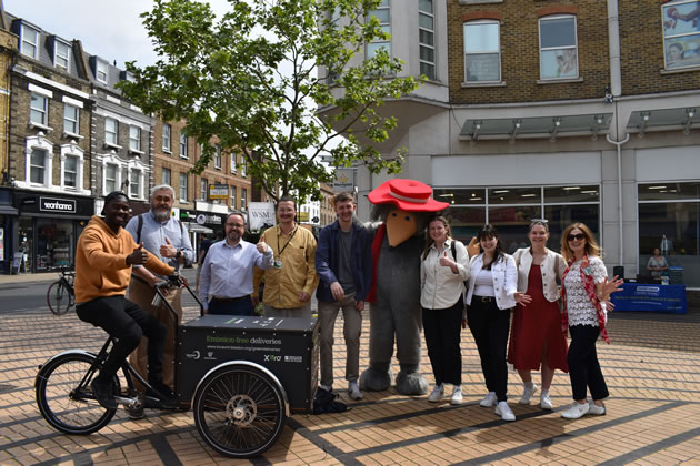This forms part of the Defra-funded Clean Air Villages 4 (CAV4) programme. The launch event saw all partner organisations come together to showcase the bike to local businesses. Cross River Partnership, London Borough of Merton, Love Wimbledon and XeroE were joined by very special guest The Wombles, and introduced the scheme to local businesses looking for a free, local delivery solution.