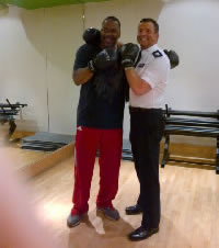One event saw him taking part in a charity boxing bout against former world heavyweight champion Tim Witherspoon. He was pictured with Tim (right) in a Wimbledon gym as part of the pre-fight publicity.