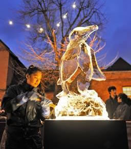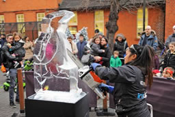 The watching crowds enjoyed a real treat as Anne carved beautiful, detailed, winter animals including a polar bear and penguin from the blocks of ice.